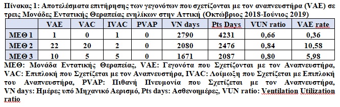 ΕΠΙΤΗΡΗΣΗ ΤΩΝ ΓΕΓΟΝΟΤΩΝ ΠΟΥ ΣΧΕΤΙΖΟΝΤΑΙ ΜΕ ΤΟΝ ΑΝΑΠΝΕΥΣΤΗΡΑ ΣΕ ΤΡΕΙΣ ΜΟΝΑΔΕΣ ΕΝΤΑΤΙΚΗΣ ΘΕΡΑΠΕΙΑΣ ΕΝΗΛΙΚΩΝ ΣΤΗΝ ΑΤΤΙΚΗ