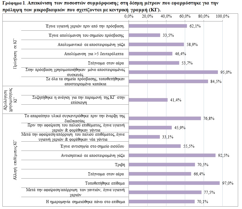 ΣΥΜΜΟΡΦΩΣΗ ΤΩΝ ΕΠΑΓΓΕΛΜΑΤΙΩΝ ΥΓΕΙΑΣ ΣΤΗ ΔΕΣΜΗ ΜΕΤΡΩΝ ΓΙΑ ΤΗΝ ΠΡΟΛΗΨΗ ΤΩΝ ΜΙΚΡΟΒΙΑΙΜΙΩΝ ΠΟΥ ΣΧΕΤΙΖΟΝΤΑΙ ΜΕ ΚΕΝΤΡΙΚΗ ΓΡΑΜΜΗ