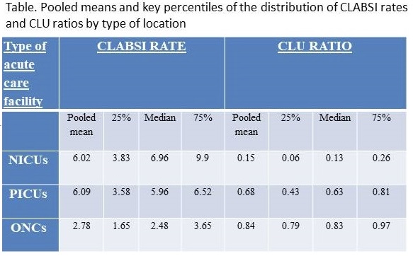 METHODS: Active surveillance for CLABSI was conducted from June 2016 to February 2017. A collaborative network of 14 NICUs, 5 PICUs and 6 Pediatric Oncology Units (ONCs) participated in the program. Surveillance definitions of central line (CL), central line utilization (CLU) ratio, CLABSI event and CLABSI rate were based on 2014 Centers for Disease Control and Preventions’ National Healthcare Safety Network criteria. Medical records were assessed daily for calculating CL days, patient days and susceptibility of isolated organisms.