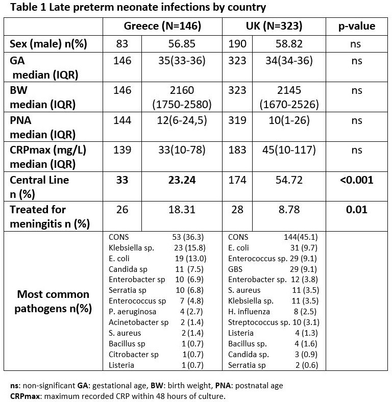 METHODS: neonIN is an international web-based surveillance database for culture-proven neonatal infections. Cases of neonates with culture-proven sepsis from participating neonatal-units were extracted and analysed. Late-preterm neonates were defined as those with a gestational age of 33+0 to 36+6 weeks. Repeated growth of the same organism was considered the same episode if occurring within 7 days, or 10 days for Coagulase-negative staphylococci(CONS) and fungi.